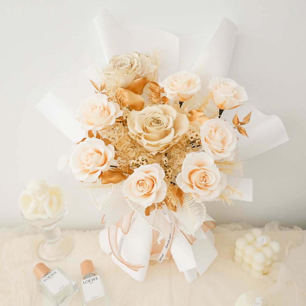 永生花是由鮮花經過特殊處理後製成的花材,可保有鮮花般的觸感與顏色,