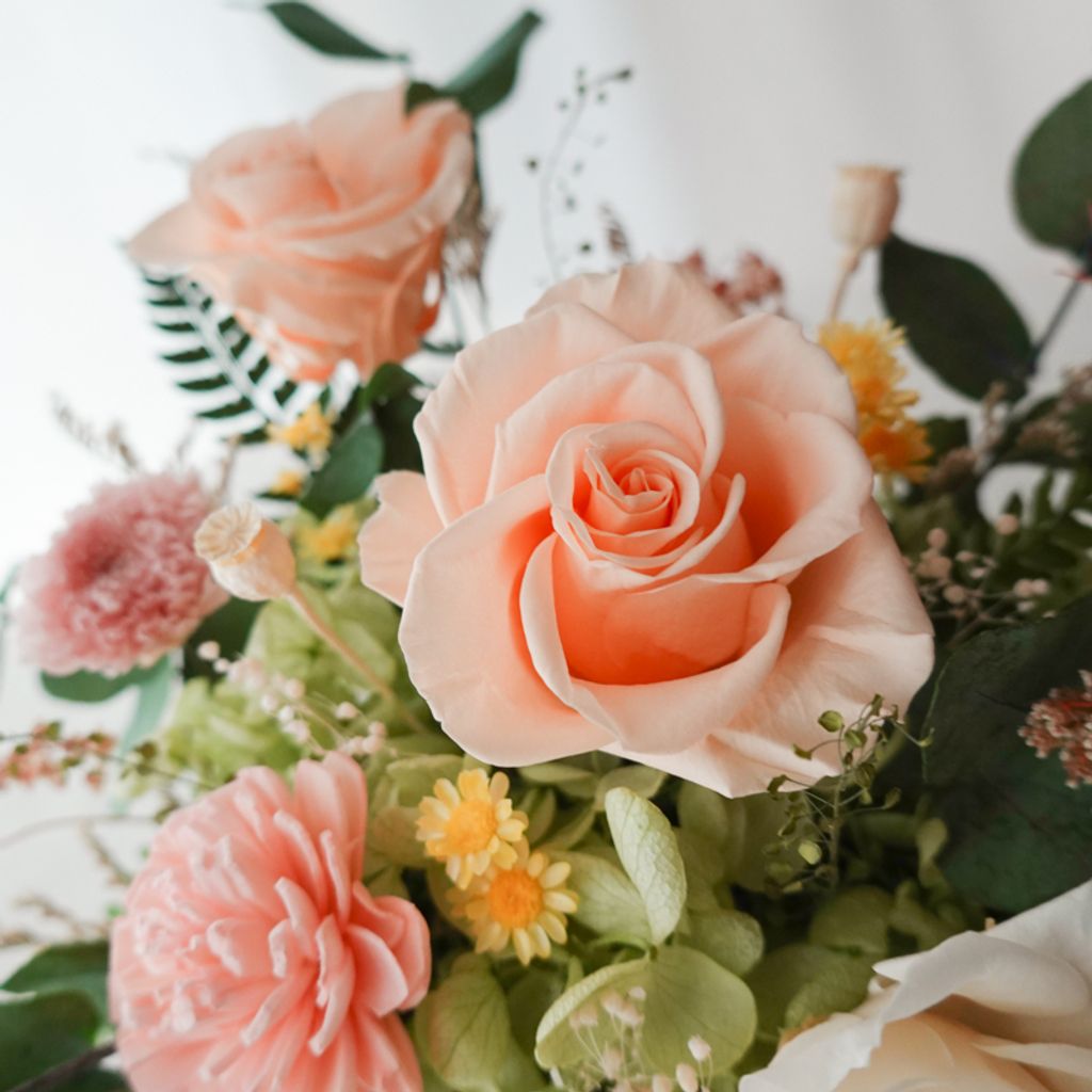 永生花是由鮮花經過特殊處理後製成的花材,可保有鮮花般的觸感與顏色,
